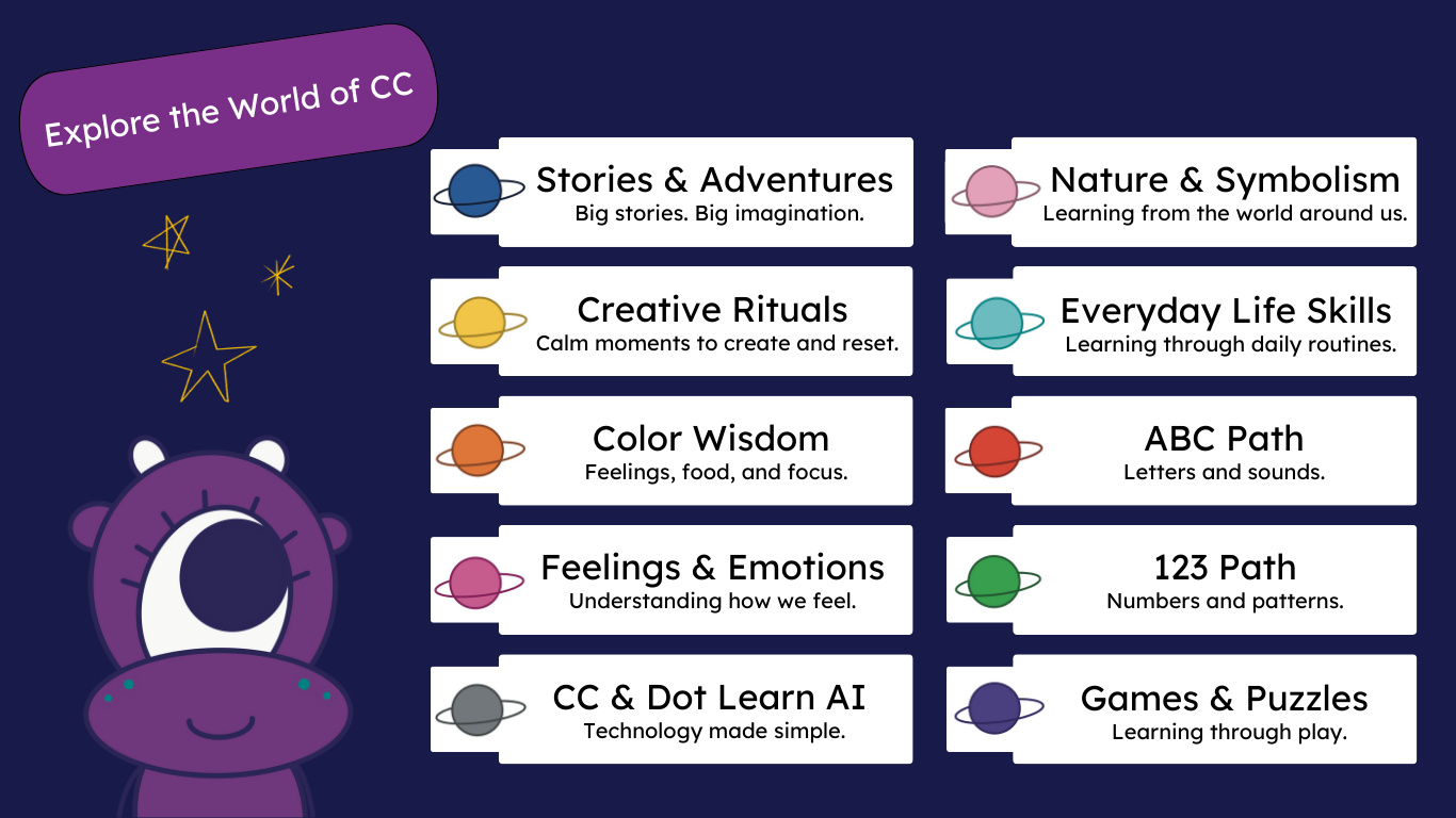 Join thousands of beings exploring the World of CC!Free weekly stories • Wellness • Cosmic fun for everyone!